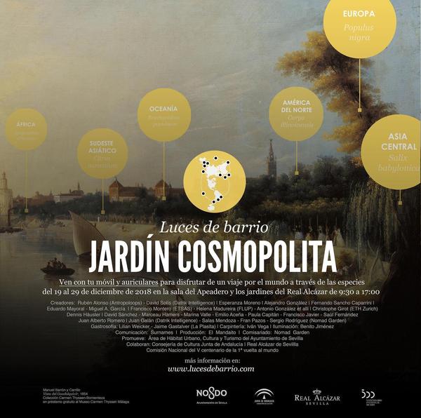 El día 18 de diciembre de 2018 se presenta la iniciativa del Jardín Cosmopolita en el marco del Real Alcázar, de la mano de el Ayuntamiento de Sevilla y la Consejería de Cultura de la Junta de Andalucía, promotores del proyecto. La presentación fue llevada a cabo por el delegado de Hábitat Urbano